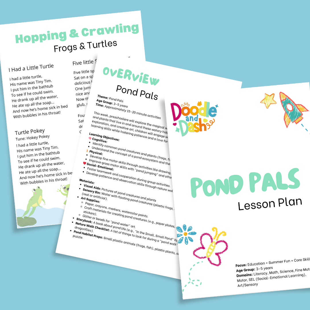 Splash into a week of learning that feels more like play! With frogs, turtles, ducks, and all things squishy and splashy, this themed plan blends education, summer vibes, and core skill-building—without the chaos.